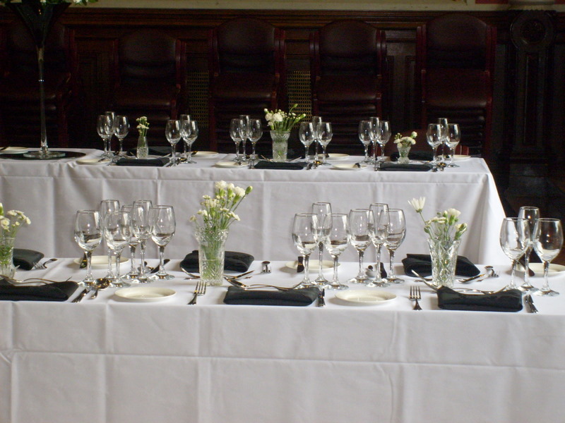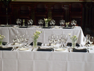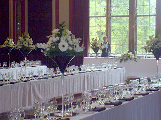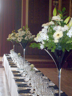 Today I provided bouquets and table arrangements for Amy and Dylan's wedding at Dulwich College. The colour scheme was black and white and this was incorporated using white/ivory flowers and black vases.