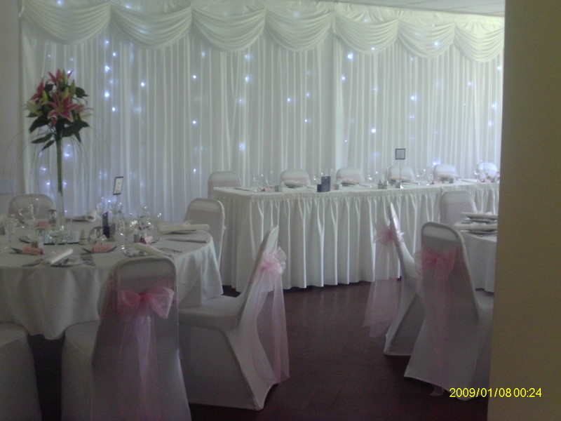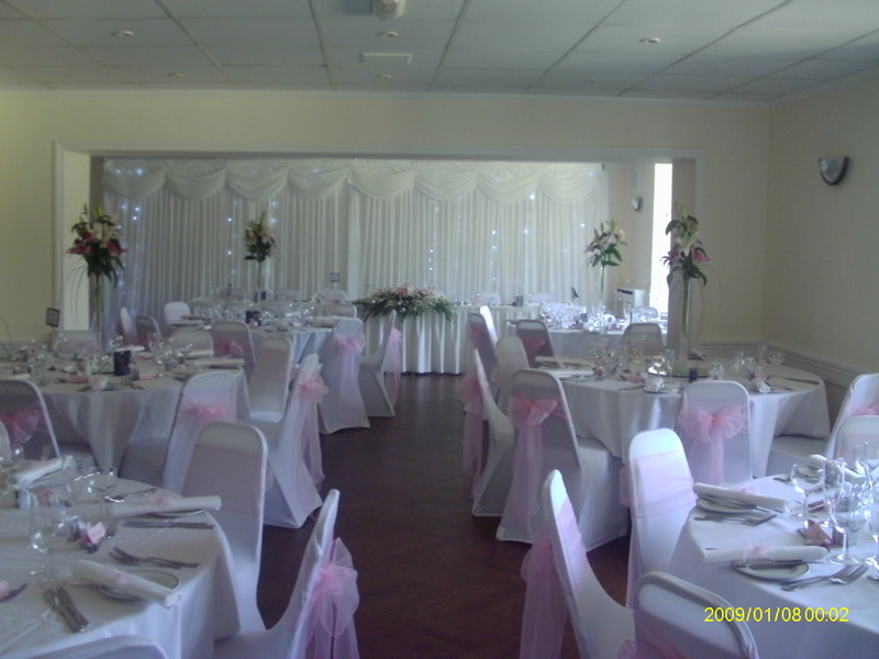 I filled small vintage cut glass vases along with small bubble vases in between the main arrangements with a selection of white flowers to finish the look.