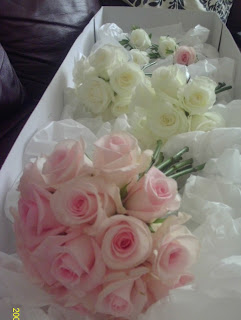 The colour scheme was pink and antique gold and Lisa chose to carry a small hand tied bouquet of pale pink 'Sweet Akito' roses whilst her two daughters carried flower girl bouquets of ivory 'Akito' roses.