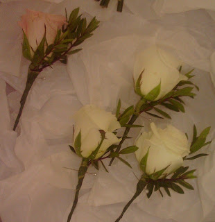 Barry wore a single 'Sweet Akito' rose butonhole and the rest of the bridal party wore single 'Akito' rose buttonholes.