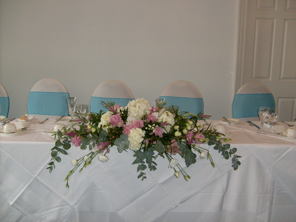 White chair covers and a turquoise organza sash completed the look. The newly decorated Prince Regent room tied in nicely with the colour scheme.