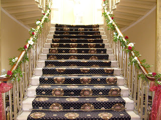 I also provided a Wishing Tree for guests to write messages to the Bride and Groom. This was decorated with white tags with silver ribbon to tie in with the colour scheme. The staircase was simply dressed with white organza and finished off with large bows at the bottom.