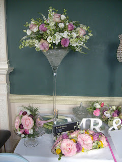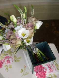On Sunday I exhibited at Sundridge Park Wedding Fair. I chose a vintage theme and used three types of vintage rose - Memory Lane, Amnesia and Esperance along with Cool Water roses. Below are photos of the arrangements and bouquets on display.